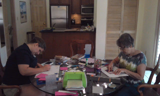 My daughter, Adrienne Perkins, and I were able to stamp together at Little Gull. She surprised me by bringing over her supplies. We used her retired SU stash," cased" a Linda Heller card sketch, and made 5 cards each. What fun... She must of sensed I needed my stamping fix. Thanks, Adrienne.